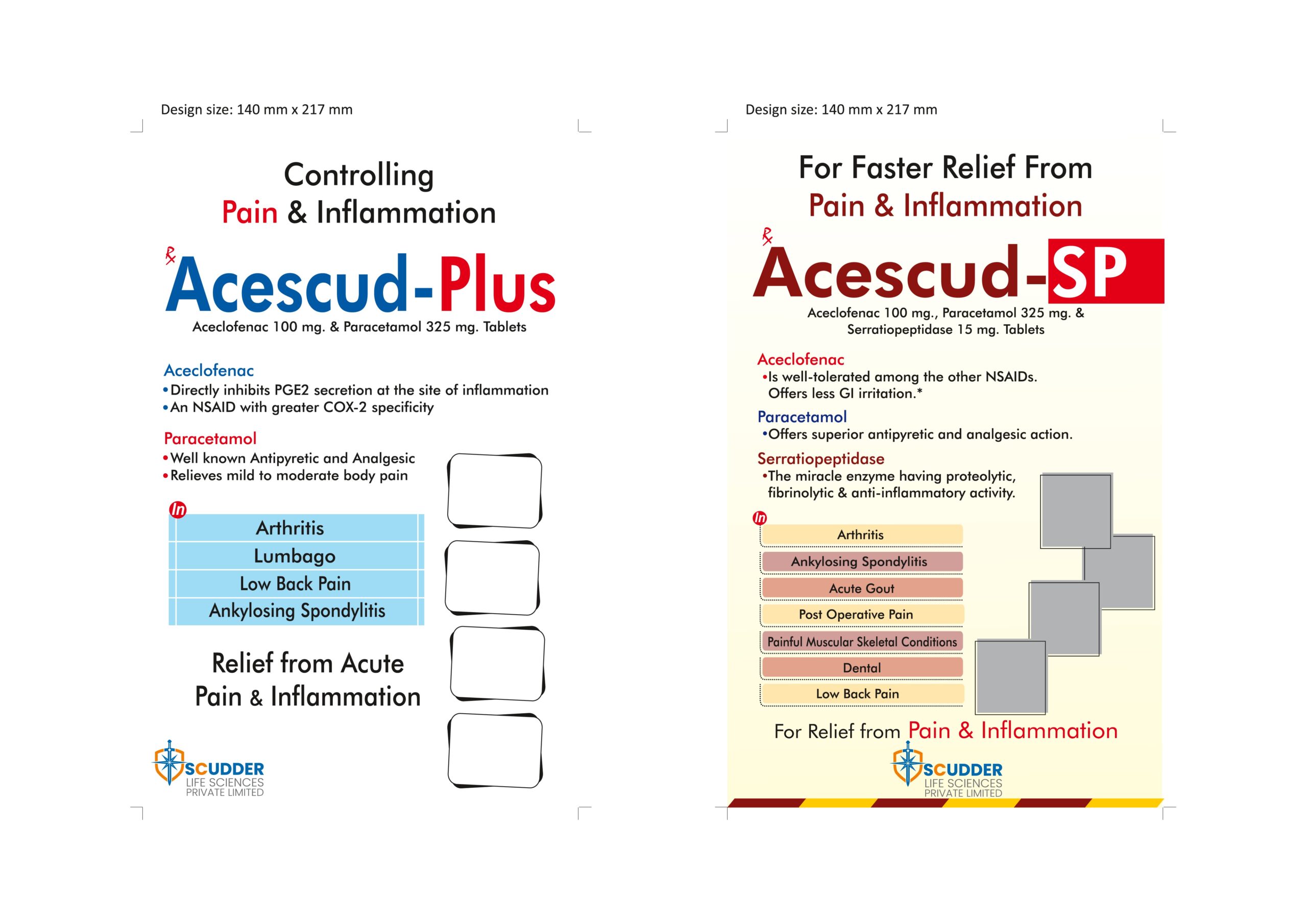 Acescud-Plus combines Aceclofenac and Paracetamol to provide effective relief from acute pain, inflammation, and musculoskeletal conditions such as arthritis, lumbago, and low back pain.