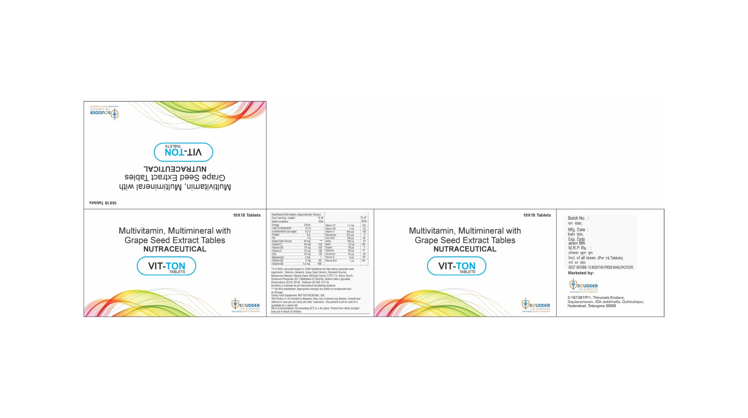 VIT-TON Tablets are a scientifically formulated nutraceutical combination of multivitamins, multiminerals, and grape seed extract designed to support overall health and wellness.